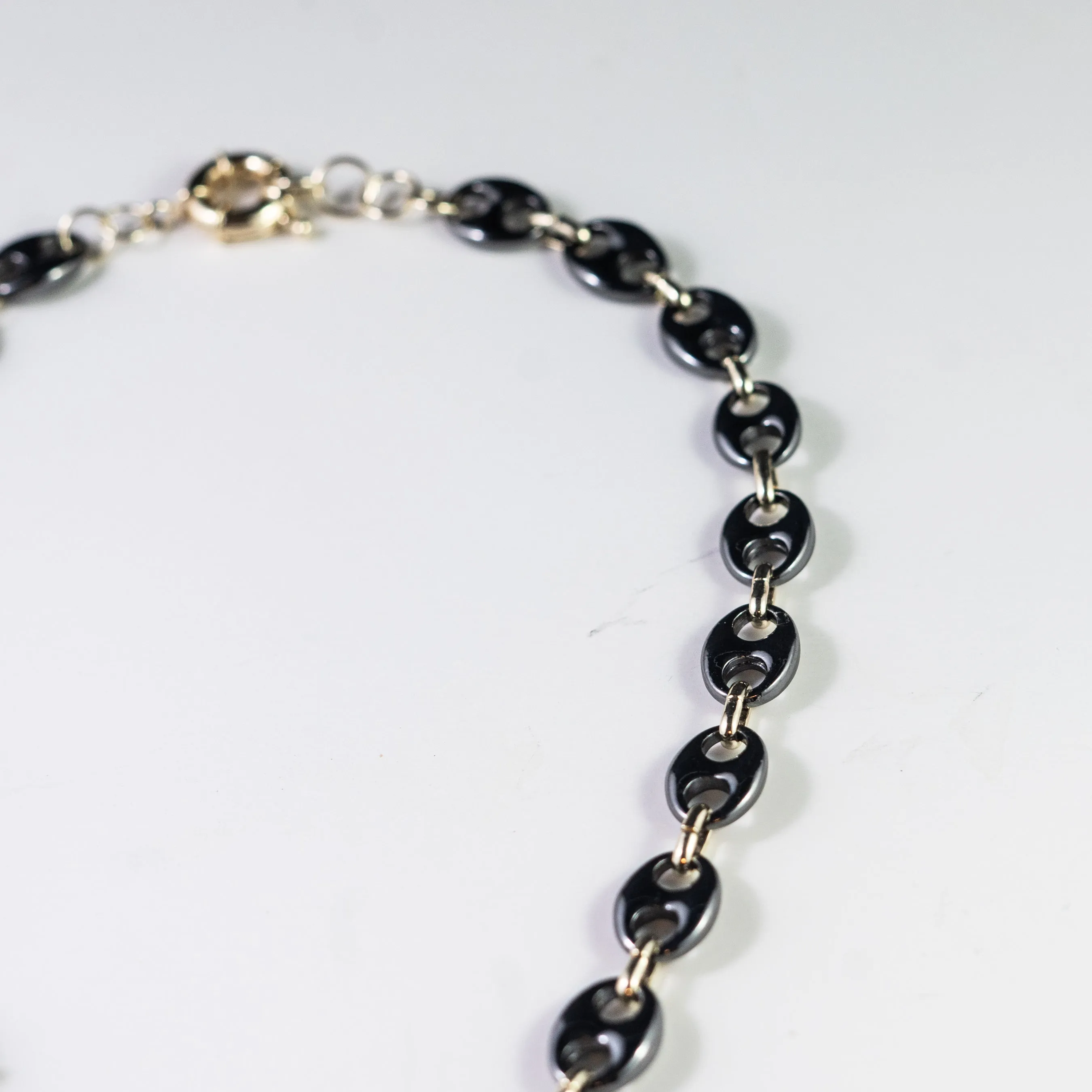 In a beautiful gunmetal colour with gold accents, this piece would make a wonderful gift!
